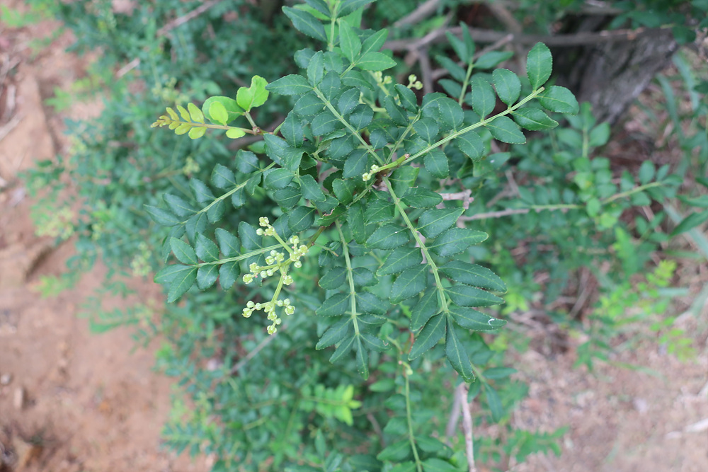 산초나무는 쌍떡잎식물 쥐손이풀목 운향과의 낙엽관목으로 산지에서 자란다.