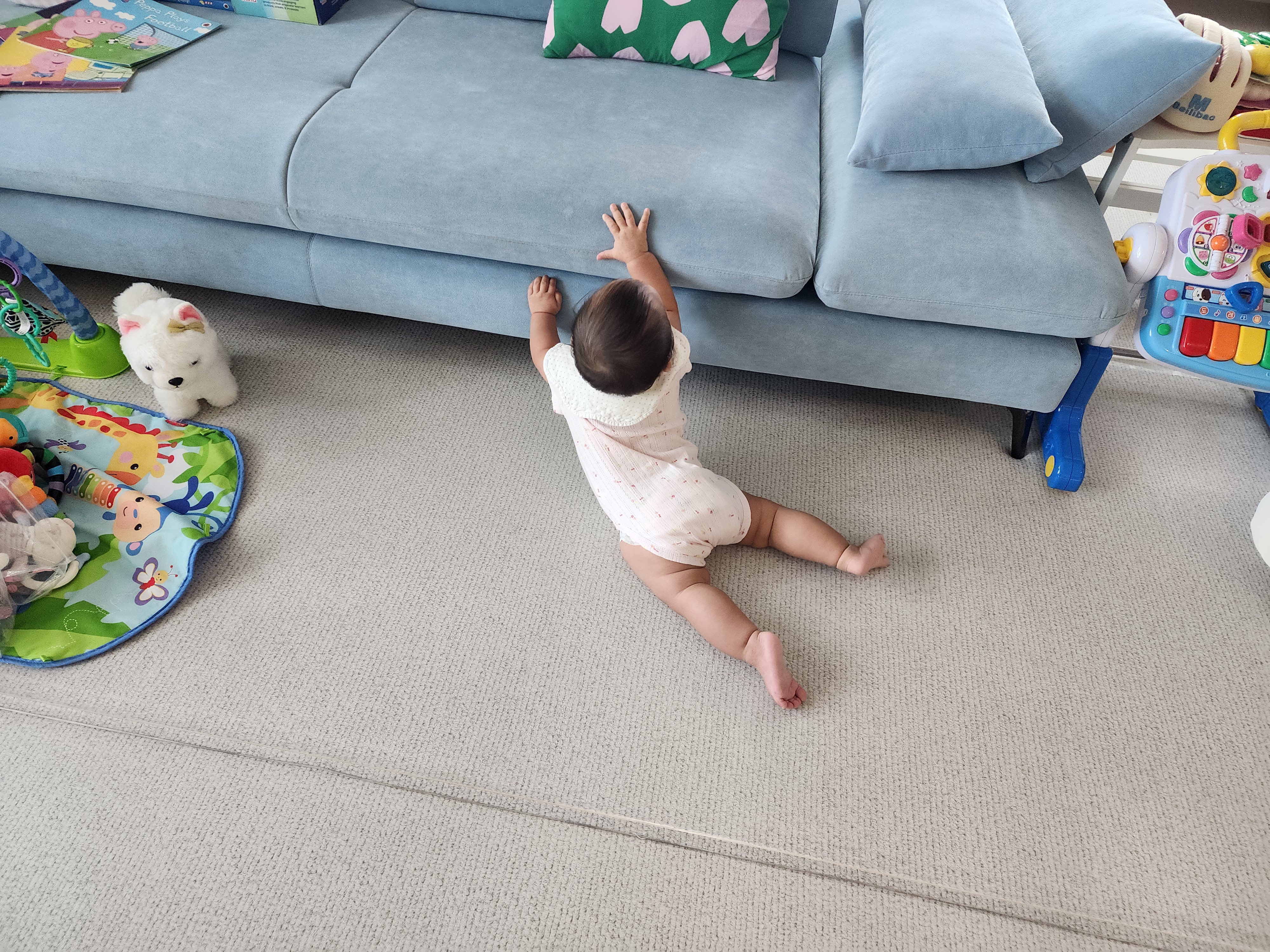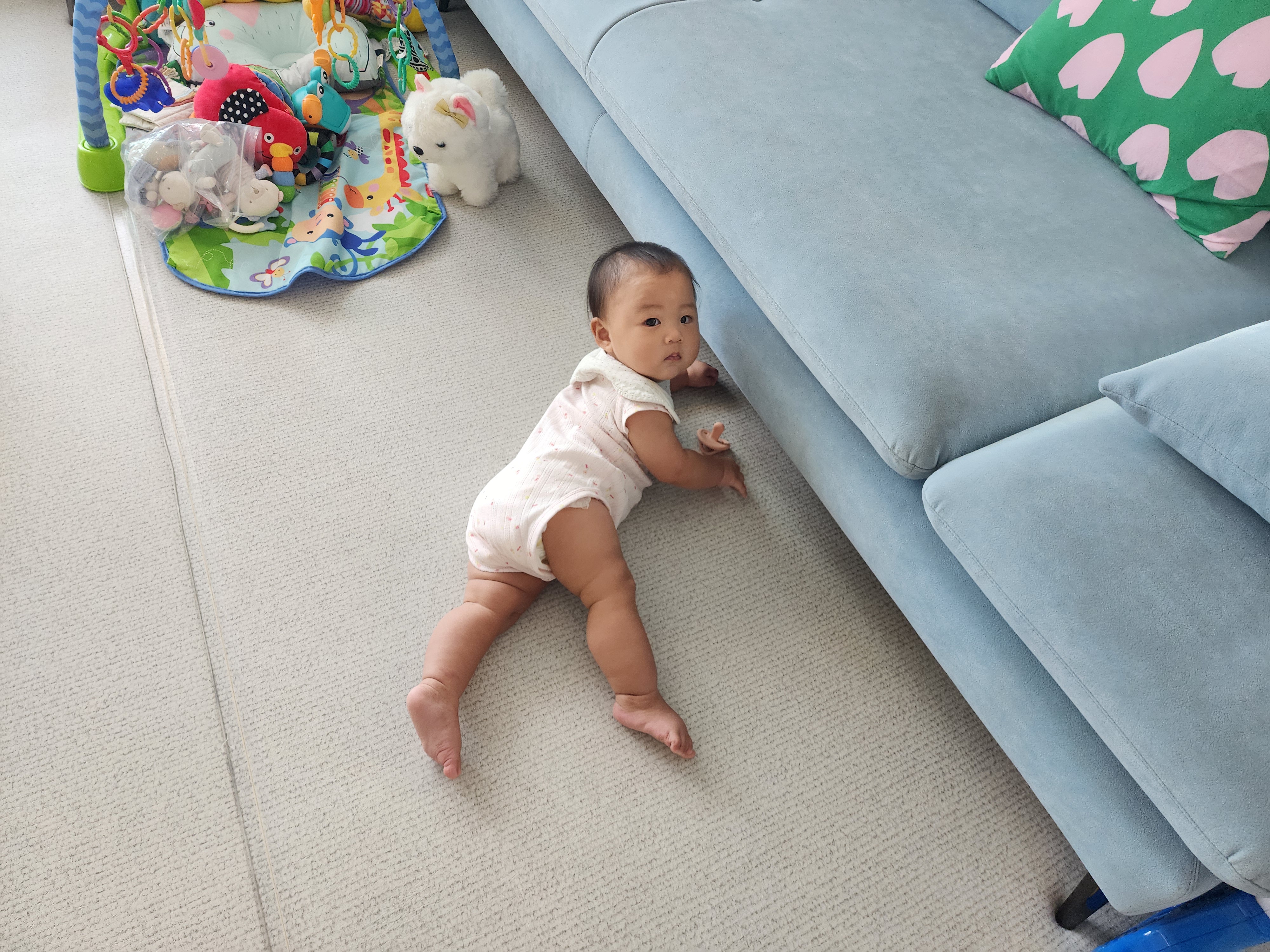 하윤이는 소파 잡고 일어서기도 잘해서 대견하다는 생각이~
