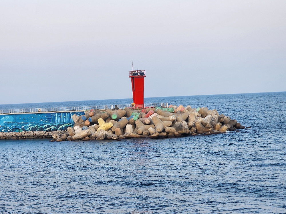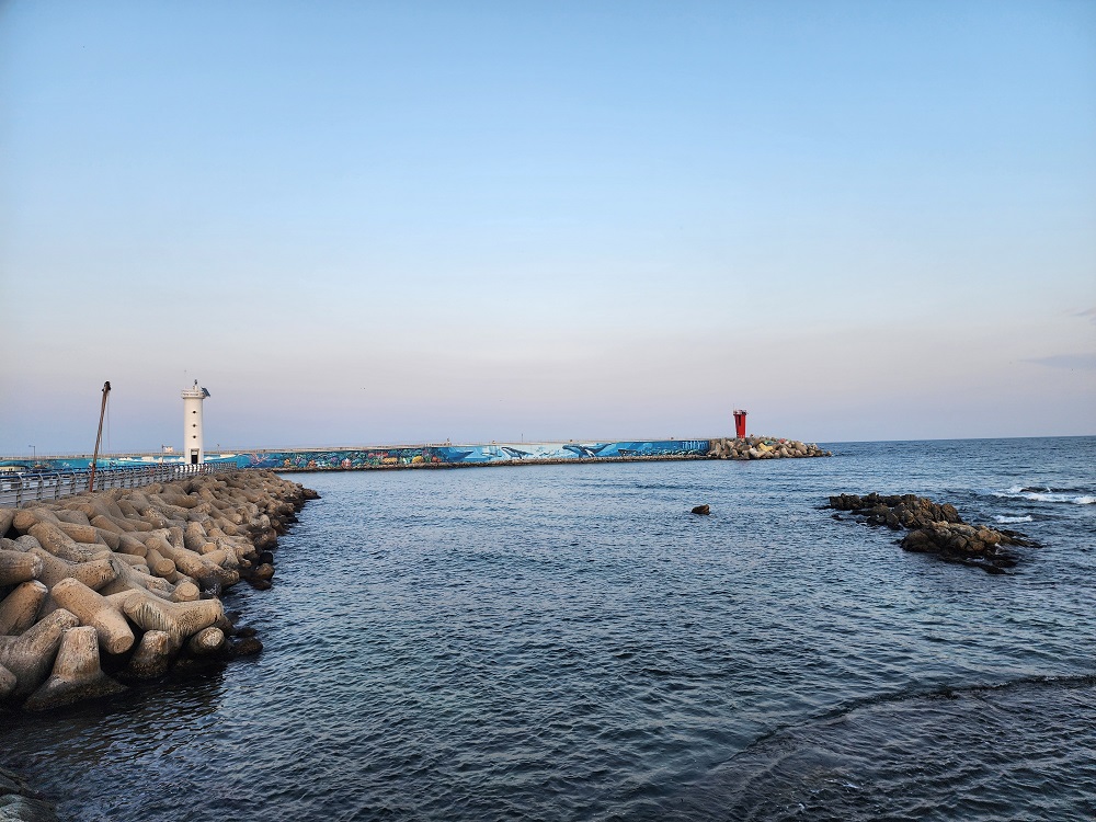 왼쪽으로 가면 빨간 방파제 등대를 마주하게 되고
