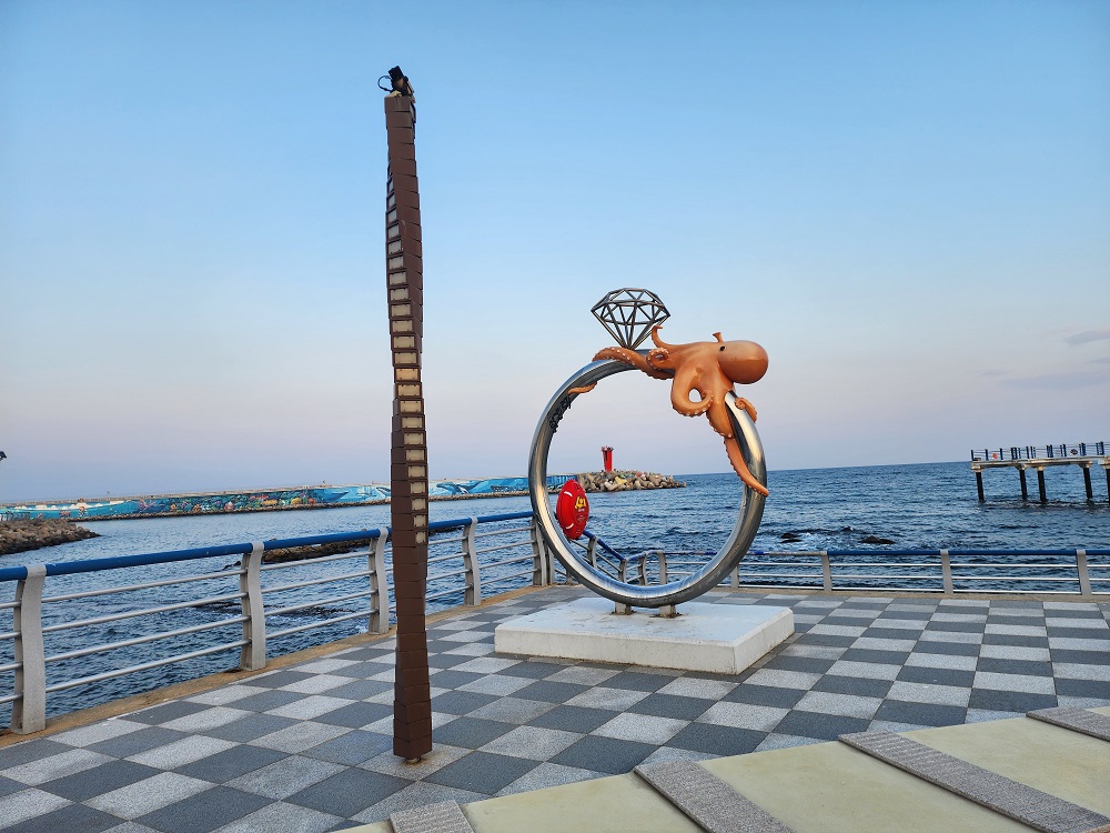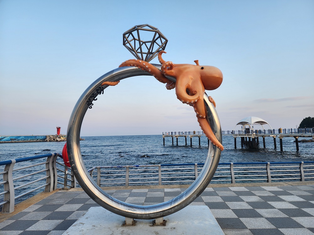 입구에는 고성에서 많이 잡히는 문어를 테마로 조형물이 서 있다.