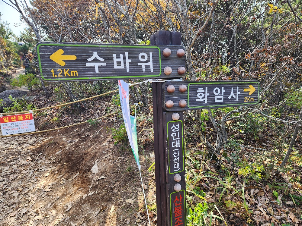 갈림길로 다시 되돌아가서 화암사로~