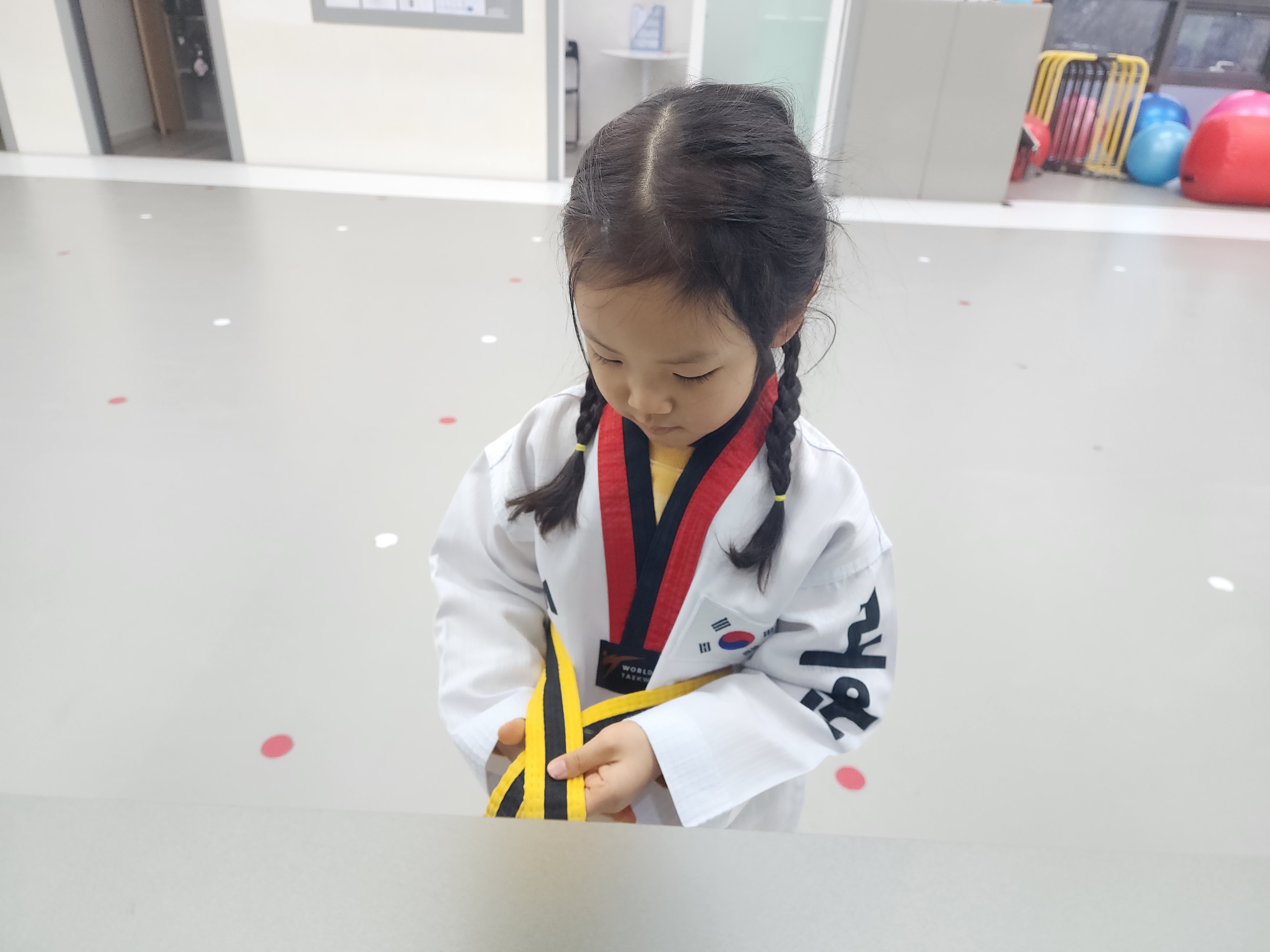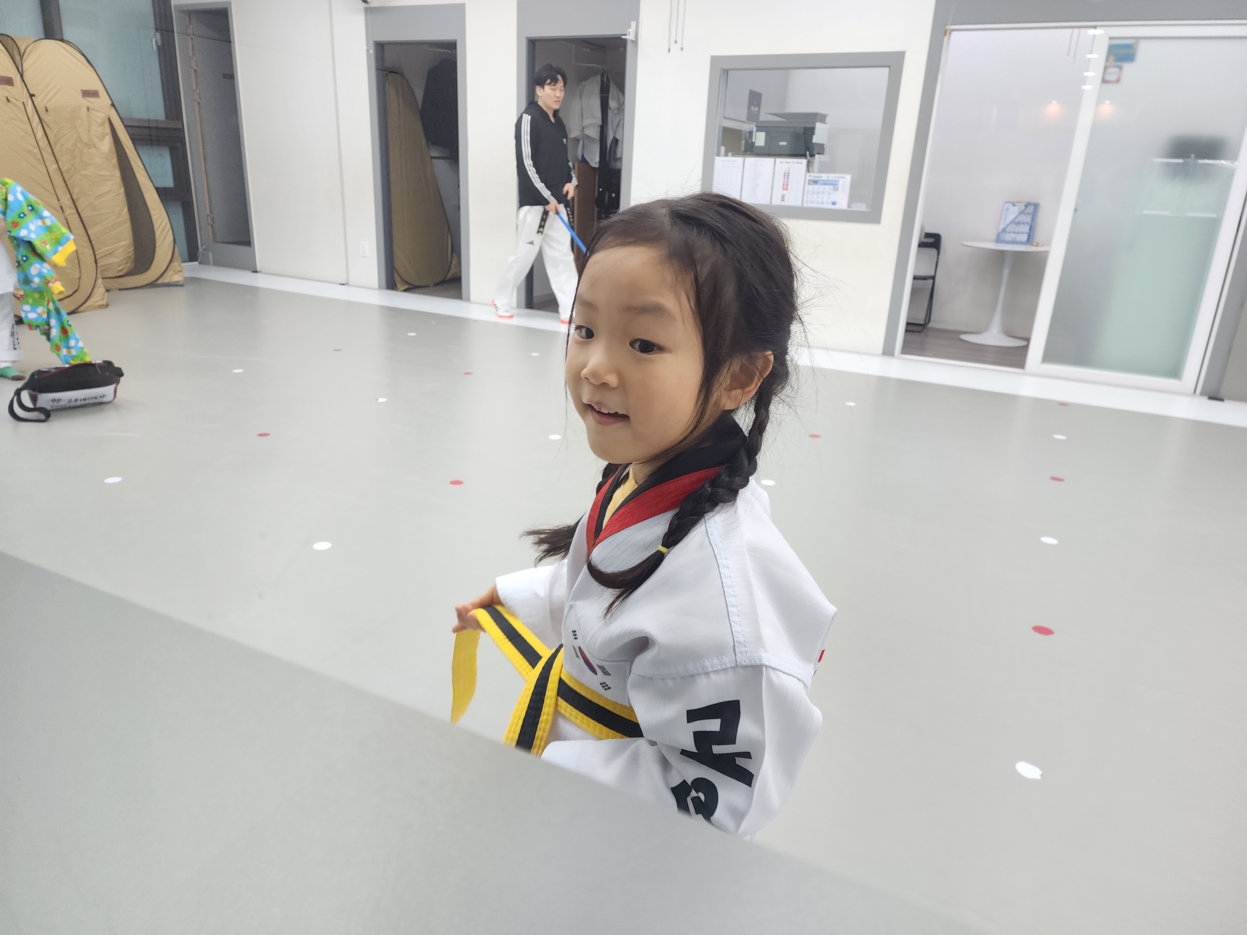 귀엽고 예쁜 가윤이는 태권도를 해서 무척 활달해졌고